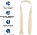 🔑 Disponibile in \*\*misure prefissate\*\* (0,50m -1 m- 1,5 m -2 m - 2,5 m - 3 m- 3,50 - 4 m- 4,5 0- 6m ) e in \*\*colori\*\* bianco, beige, blu e nero. Questa cerniera rappresenta una scelta affidabile per chi cerca accessori durevoli e di qualità per la \*\*tappezzeria nautica\*\*, garantendo una chiusura sicura e resistente nel tempo.