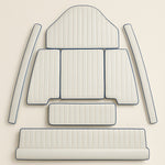 Cuscini per imbarcazioni realizzati in \*\*ecopelle nautica\*\*, con \*\*interno in Air Gomma a cellula chiusa da 5 cm\*\*. Rivestimento disponibile in vari colori (fungicida, antisalsedine, resistente ai raggi solari), con scelta personalizzata del \*\*profilo perimetrale\*\* e possibilità di cucitura a vista ribattuta. Il fondo è in \*\*rete PVC con velcro\*\* e dischetti di fissaggio per l’installazione diretta sul piano dell’imbarcazione.