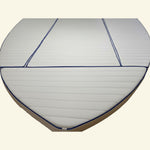Ecopelle nautica canettata trapuntata con costine verticali da 6 cm, realizzata mediante elettrosaldatura e dotata di uno strato interno di OVATTA DACRON da 3 mm per un effetto ondulato, soffice e tridimensionale. Prodotto di alta qualità, specifico per la tappezzeria nautica, morbido e facilmente lavorabile grazie alla sua elasticità bielastica.